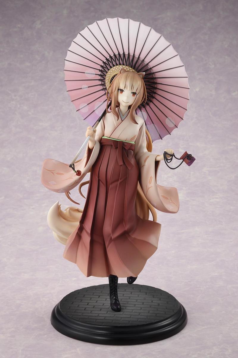 此次推出的「赫蘿 袴和服Ver. 1/6 比例模型」和先前發表的阿爾薩斯傳統服裝Ver.相同,是將 2020 年舉行的活動『狼與辛香料 POP UP SHOP in MAGNET by SHIBUYA109』中由文倉十老師繪製的新插畫立體化。露出溫柔笑容的赫蘿搭配充滿大正浪漫的袴和服、紙傘,藉由漸層粉色塗裝表現素雅的色澤與光影變化,並以印刷再現可愛的麥穗、蘋果花紋。