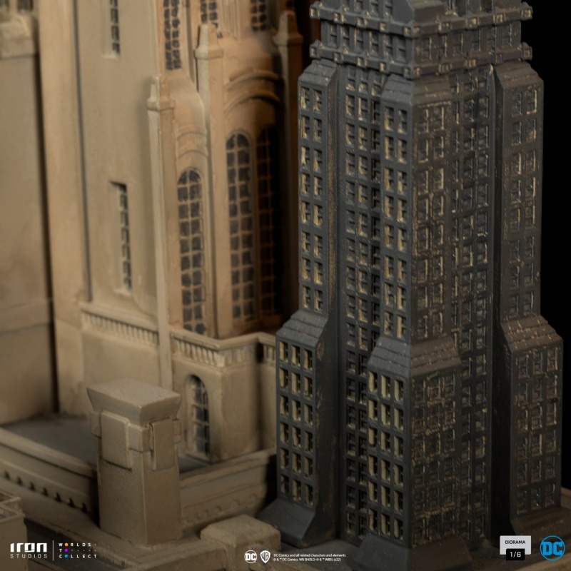 底座部分是以高樓林立的現代化都市-大都會(Metropolis)市景為題設計,還能看到兩人工作的地方「星球日報 (Daily Planet) 」大樓喔。