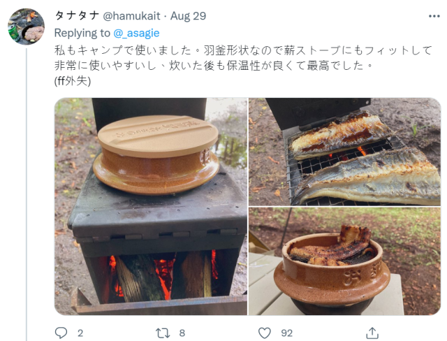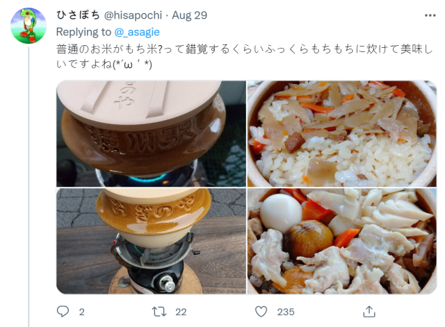 而這篇推文,也被荻野屋自家推特轉推,表示非常歡迎消費者拿自家容器煮飯,一起享用美味的白飯。