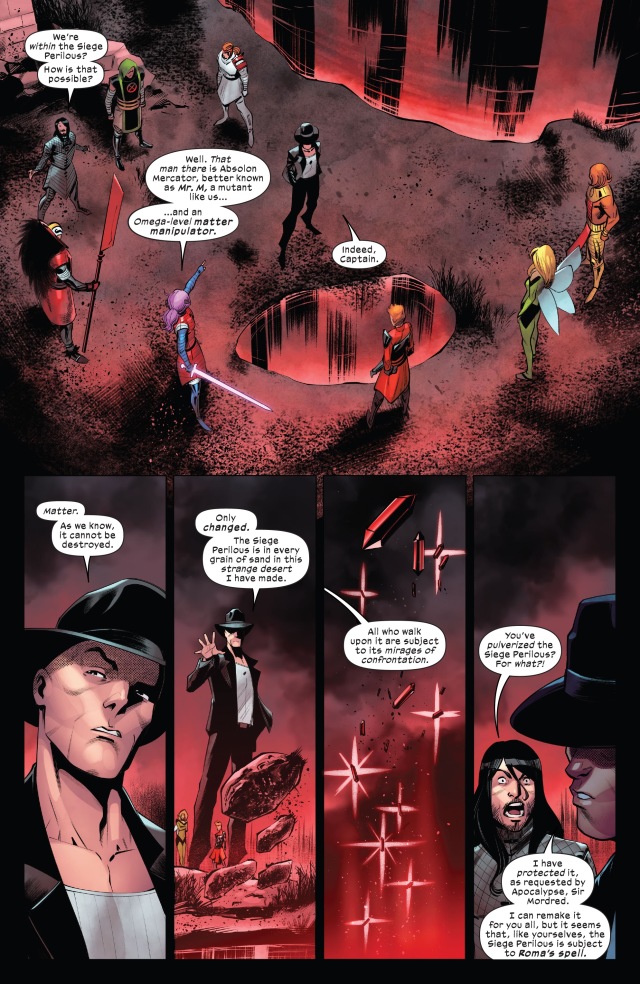 在旅途中,X騎士們發現危險之席位於至今仍然封鎖著的莫凱托(Mercator)國度當中。而這個國度正是受到克拉科奧米加級變種人的名單當中遲遲未見的「M先生(Mr. M)」阿布索倫‧莫凱托(Absolon Mercator)所統治,危險之席也是由「天啟」(Apocalypse)先前交給他保管的。