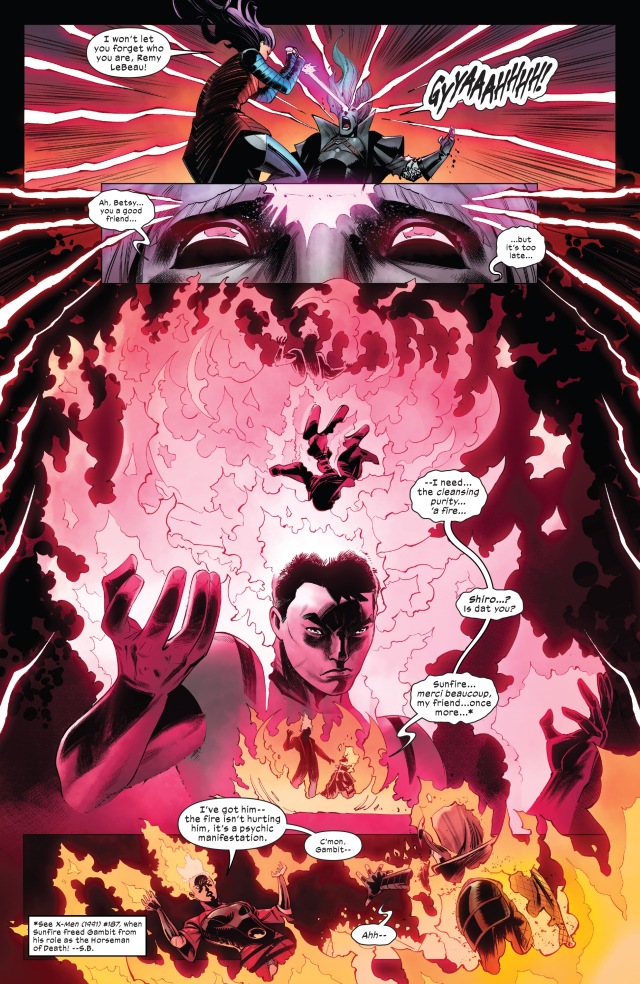 而在一番激戰之後,英國隊長總算擊敗了暴走的金牌手,將他恢復成真正的自己——就像當年日本變種人陽炎(Sunfire)將金牌手從天啟的死亡騎士(Horseman of Death)恢復成原本的自我一樣。