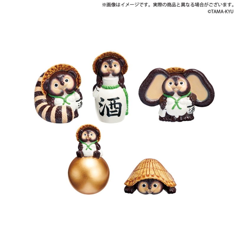 日文中的 タヌキ 是名為「貉」的犬科動物,也被稱為「貉子」、「狸」,在日本除了招牌貓之外,店家也常以此為題製作招財祈福的吉祥物,不過這次 TAMA-KYU 要推出的可不只是單純可可愛愛的吉祥物轉蛋,而是有種結合先前推出過的「6割增動物」風格的有趣新造型,因為這些狸是長大了沒錯,不過只有身體的一部分變超大,有夠好笑!一共有 5 種款式可以收集: