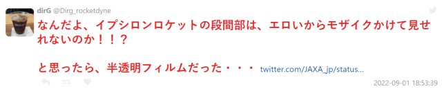 或許大家不知道,除了美國的 NASA 太空總署以外,日本其實也有航太的國家研究及發展機構-JAXA(宇宙航空研究開發機構),負責研究、開發人造衛星與發射載具等太空任務。最近官方推特發布了一部關於 10 月發射的火箭 Epsilon Rocket No.6 的影片,卻因為上了馬賽克,意外成為網友討論的話題,不少人覺得「色色的」,是怎麼回事呢 ?