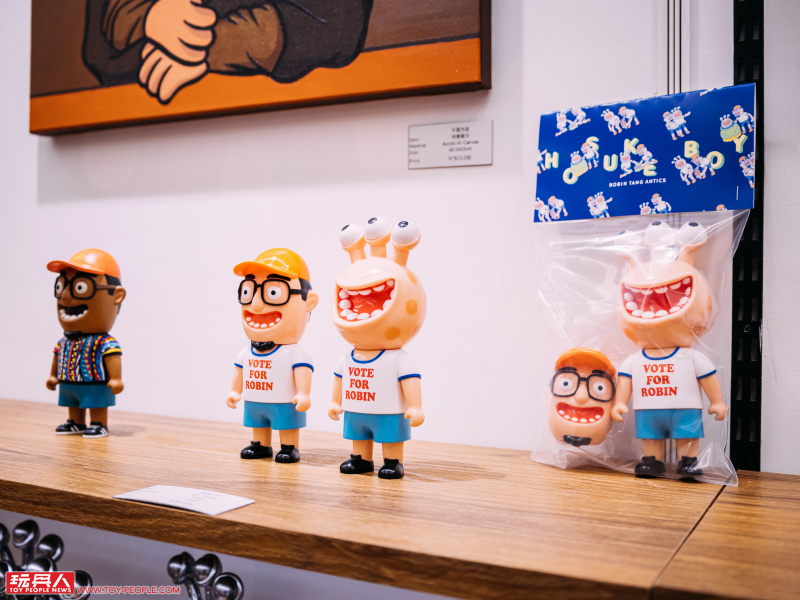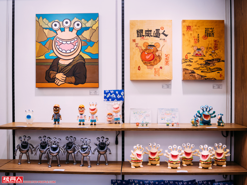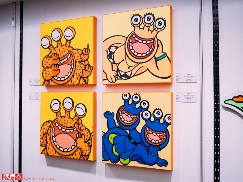 除了粉絲們都相當期待的軟膠玩具之外,羅賓唐這次還帶來了豐富的平面畫作與客製作品,不只是顏色上繽紛多彩,新奇多變的造型更是令人玩味。