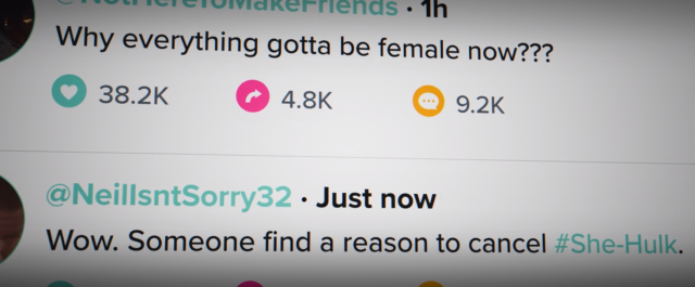 「cancel #She-Hulk」反映了當今盛行的「取消文化」(Cancel culture)。除了有抵制女浩克的訴求外,對戲外而言也帶有呼籲取消《女浩克》影集製作的含意。
