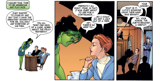 漫畫中,梅樂莉原本是GLK&H勝訴率最高的律師,「蟻人」、「奇異博士」都曾求助她協助過。有「永不敗訴代表」(The face that never lost a case)的稱號,直到珍妮佛的加入後刷新她的紀錄,甚至因此輸了一次官司。從此便開始忌妒珍妮佛,甚至奔走其他事務所試圖扳倒珍妮佛。