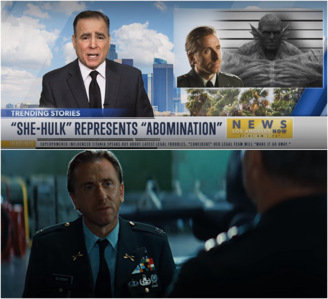在報導珍妮佛擔任「惡煞」布朗斯基辯護律師的新聞中,使用了2008年《無敵浩克》中的素材畫面。