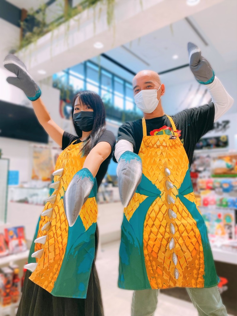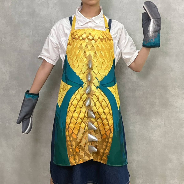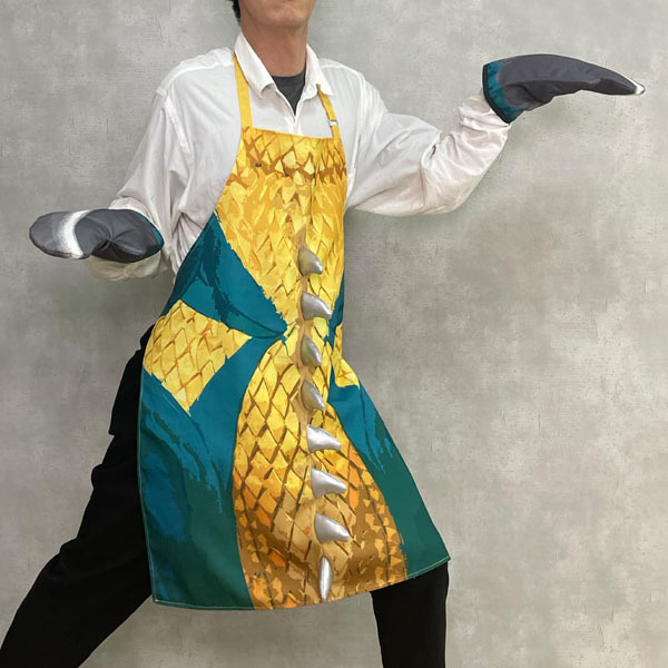 「蓋剛 圍裙&手套」,將蓋剛兩腕尖銳的鈎爪化為廚房用布手套,背後三片翼狀的鰭和羽毛般的鱗片則變成圍裙上的造型!換上蓋剛圍裙裝備之後,成為廚房中最兇殘、狂野的存在,另外也能作為清潔、DIY、園藝和任何其他工作用途。