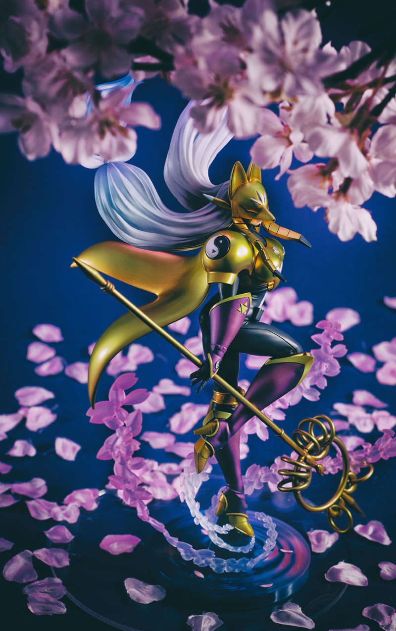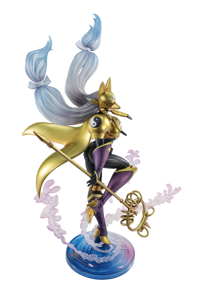 「G.E.M.系列 沙古牙獸」PVC塗裝完成品,尺寸全高約 28 公分,以沙古牙獸的進化場景為基礎,將威嚴的站在湖面上、夜櫻飛舞的唯美瞬間立體化。再現沙古牙獸妖艷華麗的外型,銀白色的髮束向上飄揚,一身金黃的盔甲施以金屬質感的厚重塗裝;凹凸有致的身體線條搭配手中的金剛錫杖,增添整體剛柔並濟的帥氣氛圍。底座的湖面漣漪與櫻花花瓣相當生動,彷彿能聽見進化的BGM啦!