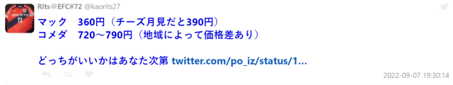 客美多的餐點在日本以大份量非常聞名,我們先前也報導過有網友點迷你尺寸刨冰,上餐卻被「逆向詐欺」,份量超出預期。而看到今年月見漢堡與其他業者的差異,網友們也表示 : 「這根本是壓倒性的戰力差距阿...」