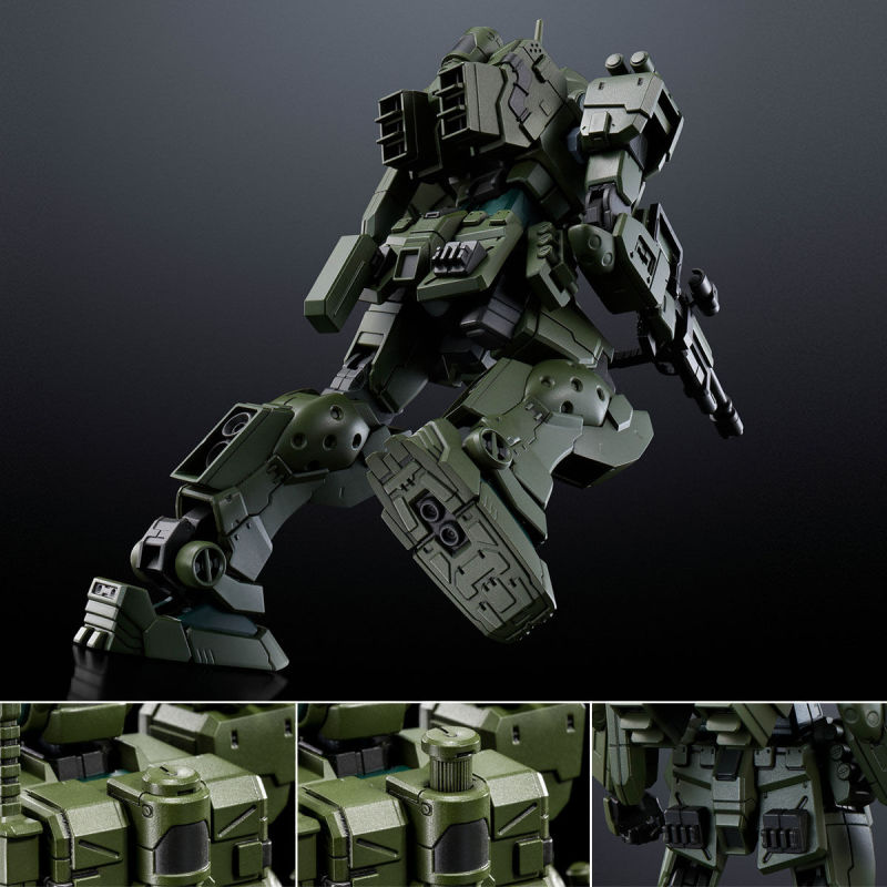 專用武裝迷你砲機槍具備精密零件分割,能重現槍身旋轉機構與前握把、側邊瞄具、彈匣固定架等部件的可動機構。此外全機多處皆有掛載豐富的武裝,像是肩部上方、前腕部的支架能掛載 WAMM 或光束軍刀,側裙甲能裝備手榴彈、後裙甲左右側掛有備用彈匣,背包側面的刀鞘中能拔出一把熱能短刀,更重現背包中央的「簡易米諾夫斯基粒子散布裝置」展開狀態。