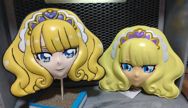 而日本還真有人會對面具DIY,推主ばたばたこ(@btbtk_mse)將從祭典上買來的面具以噴槍重新塗裝成新的樣貌,不過據說他用噴槍的經驗還不滿一年,然而還是噴出了很高的成效,他買的面具諸如《光之美少女》、《庫洛魔法使》等作品的角色,為面具重新上了墨線、加深輪廓、連髮色、臉部的光澤也重新改造,變得像是從作品裡跳出來一樣。