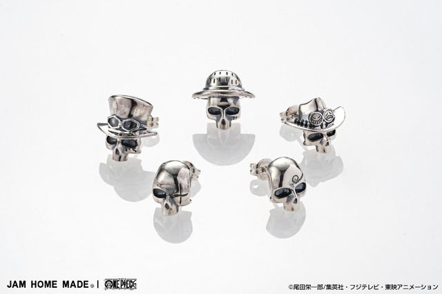 耳飾系列則推出包含;魯夫、艾斯、薩波、索隆與香吉士五款,細緻的做工非常容易認出對應角色,配戴在耳上也給人硬派的形象。