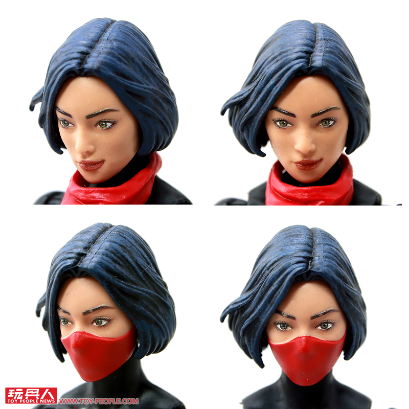 ▼附屬兩款頭雕,包括了裸顏(搭配可拆卸的紅色圍巾),以及拉上面罩的版本,兩者的面容均是以印刷的方式作表現,清秀而精緻的五官和顏質讓人驚豔不已。
