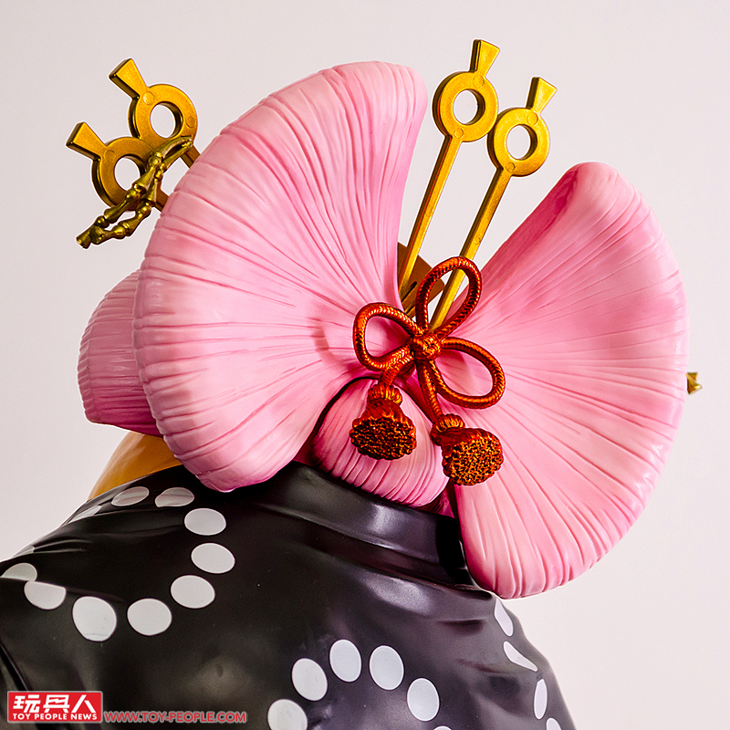 ▼ 就從這最靈魂的頭部造型開始看,迷人的粉色頭髮插著兩朵小花,細膩刻畫出高密度紋路表現梳得跟蝴蝶結一樣的茂密髮型。