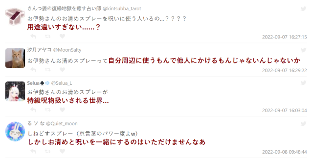 這樣的說法傳開後,「淨化鹽噴霧」的討論卻變成類似「惡靈驅散」、「施法在討厭的人」這樣的內容,讓更多人關注這個商品到底是怎麼回事。