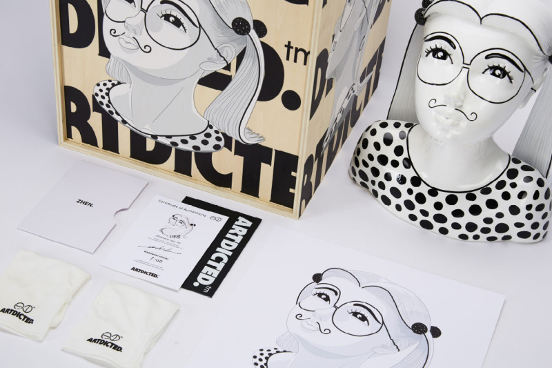 「PROFESSOR GIRL」作品由ZHEN.(至臻)提供基於區塊鏈的真品認證。ZHEN.是新世代真品藝術平台,通過在藝術品中植入NFC芯片及由區塊鏈和NFT驅動的擁有權認證系統,確保每件藝術品都是真品,並可溯源。數碼技術與藝術融合,令收藏體驗更具保護,令藝術品更具收藏價值。購買人士亦會獲得由藝術家親筆簽名的art print 一張。