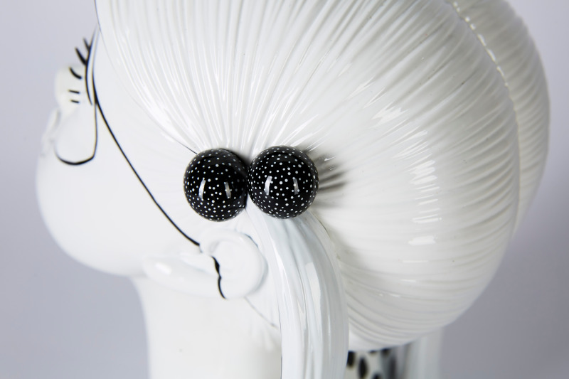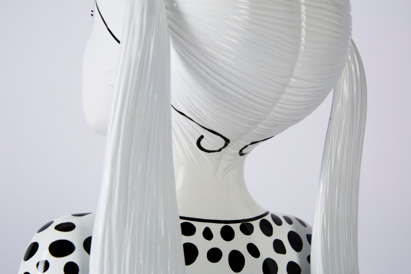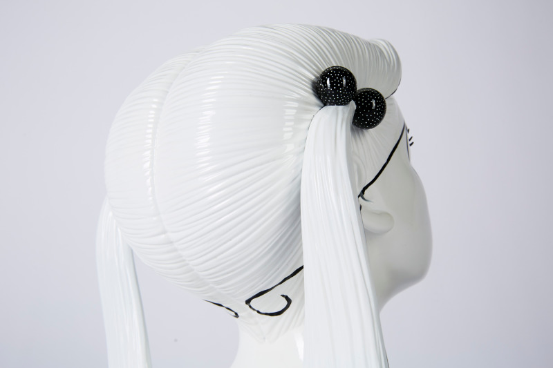 於這次展覽中,即將推出由ARTDICTED 製作的首個《VISITORS》藝術玩具(art toy)系列「PROFESSOR GIRL」,女孩半身像的頭部微微向後,好像隨時都會向後翻,呈現搖搖欲墜的危機感。