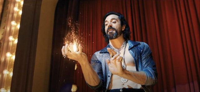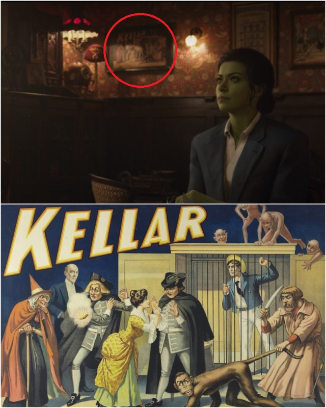 這一幕背景可以看到,牆上掛著一張19世紀末著名魔術師 Harry Kellar 的表演海報。