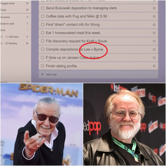 下面這項待辦事項是幫Lee vs. Byrne 官司編寫證詞,這兩個名字分別致敬《女浩克》作者 漫畫大師 Stan Lee 以及 第一位讓女浩克打破「第四面牆」的作者John Byrne。