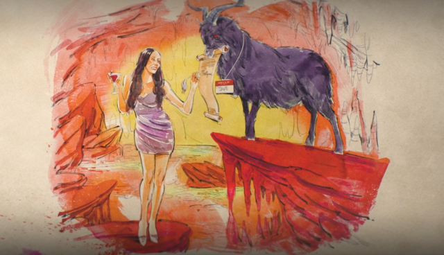 一位名為 Madisynn 的女性觀眾被叫上台,意外地被“烈焰唐尼”傳送到某個地獄維度,最終透過傳送門掉入至聖所。而根據她描述,她遇到了一個名叫 Jake的惡魔山羊,並且和她簽了協議。在片尾字卡中,可以看到這段情境: