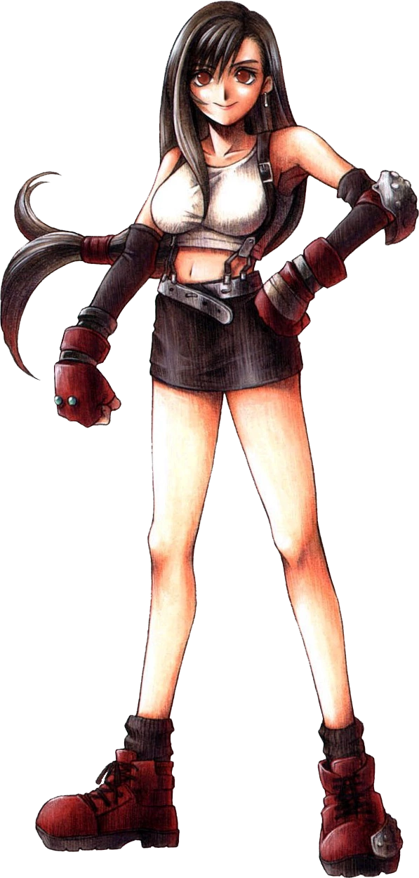 女主角之一的蒂法.洛克哈特是克勞德的青梅竹馬,幼年時一同住在小村落「尼布爾海姆」中,卻在某起事件後來到第七區貧民窟生活。蒂法總是給人溫柔開朗、愛照顧人的印象,她同樣加入了反神羅組織「雪崩」擔任會計職務,同時也是祕密基地「第七天堂」酒吧的招牌店員,可愛外表和姣好身材極度受到歡迎。不過蒂法戰鬥起來可是意外兇猛的肉體派,擅長赤手空拳施展各類格鬥技。