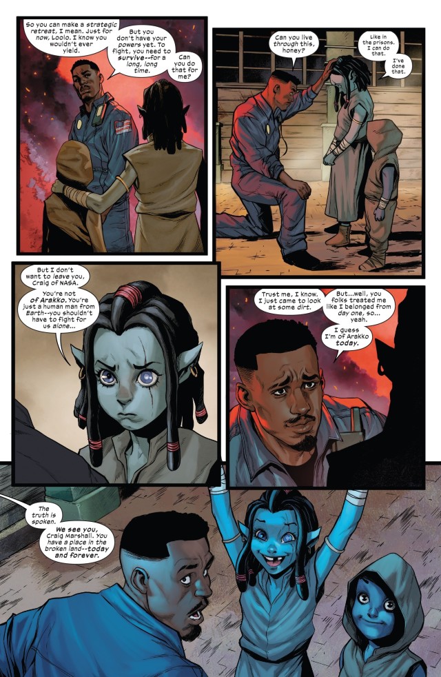 在這位土壤研究員Craig的例子中,我們可以看到就算你不是變種人、沒有「變種武器」,只要你願意與他們一同戰鬥、一同生活,不是他們的敵人,阿拉科人就會將你視為他們的一份子。他們絕非表面上看起來的兇殘野蠻。