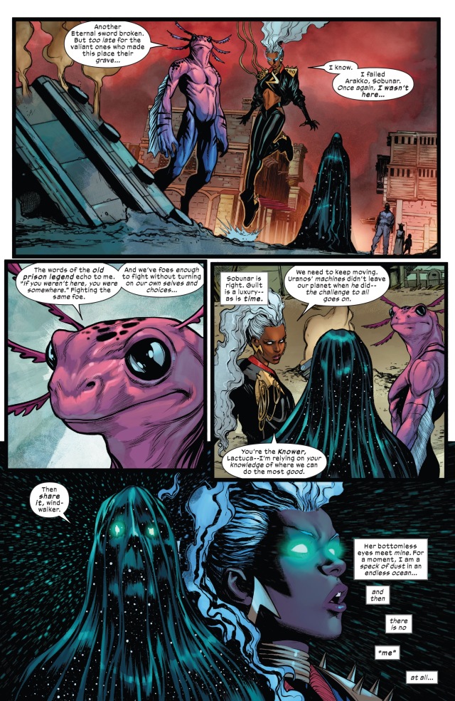透過全知者拉圖卡(Lactuca the Knower)的能力,暴風女看見了整顆星球上的一切: