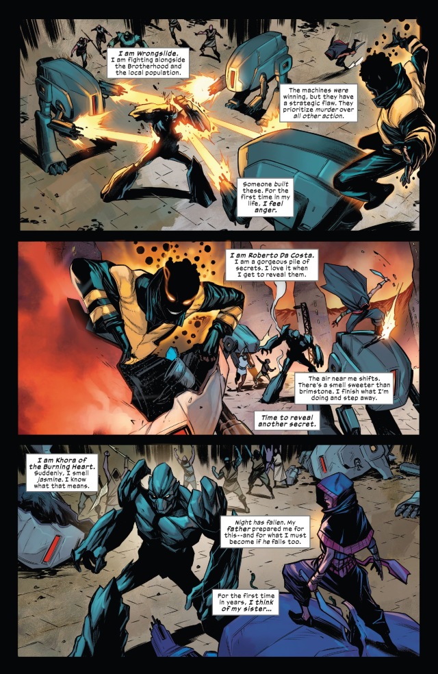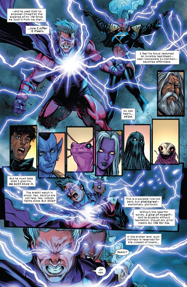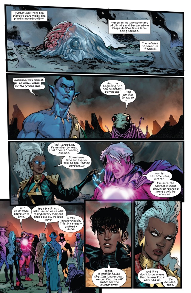 同時身為克拉科寧靜議會和阿拉科巨輪議會成員的暴風女(Storm)對於自己沒能到場迎戰烏拉諾斯非常懊悔,但是現在沒有時間讓她自責——還有許多的機器正在屠殺她的人民。在這場對全部人的挑戰當中,奧米加級變種人們通力合作。