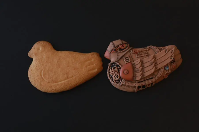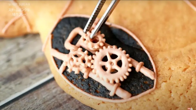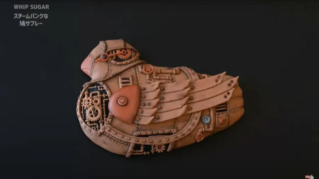 而這些鴿子餅乾上的蒸氣龐克裝飾,也都是用點心的方式製作而來,所以整個都是可以吃的。透過他的巧手,讓這些裝飾完美製作出來,並契合的和鴿子餅乾結合。