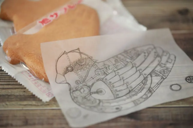 可以看到製作完成的樣貌,看起來原本樸實的鴿子餅乾,搖身一變成為帥氣的蒸氣龐克鴿,是不是很帥氣呢 !