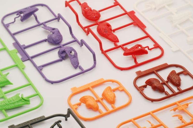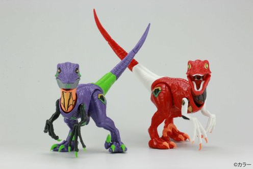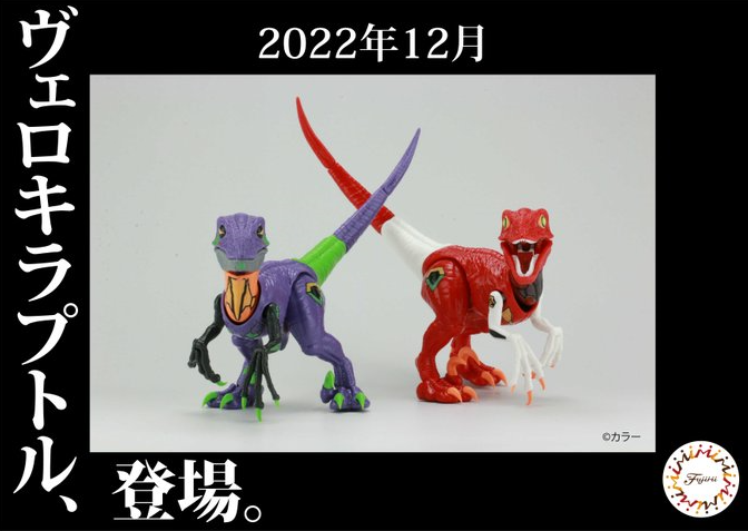 「FUJIMI 自由研究 迅猛龍 初號機規格/2號機規格」,以過去販售的迅猛龍組裝模型為基礎,共有 69 個零件,再現迅猛龍皮膚表面的紋路、手掌腳掌類似鳥禽類的構造,以及尖銳的利爪等,並分別將成形色替換為與 EVA 初號機相同的紫綠黑、與 EVA 2 號機相同的紅白橘配色,另外還附有機體標誌的貼紙,無需噴漆即可組裝,更完整還原機體造型!