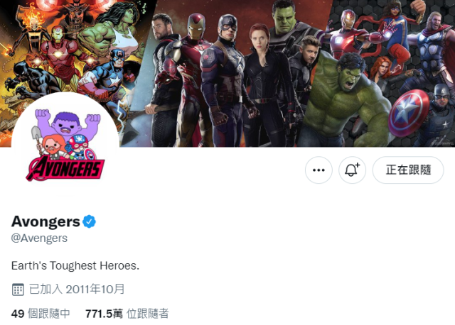有趣的是,《復仇者聯盟》官方推特帳號也順應這集改成了 Avongers,簡介也把 " 地球最強英雄 Earth’s Mightest Heroes" 改成 "地球最艱苦的英雄 Earth’s Toughest Heroes"