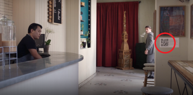 背景這位路過的金髮男顧客,透過演員表得知是 Brandon Stanley 飾演的 Eugene Patilio ,而之後他將以「青蛙人」的服裝身分正式現身。