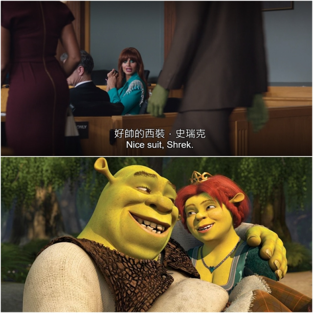 泰坦妮亞在法庭上以「史瑞克」調侃女浩克,諷刺的是,自本劇宣布以來,現實中也有不少網友都以《史瑞克》的費歐娜來稱呼她。