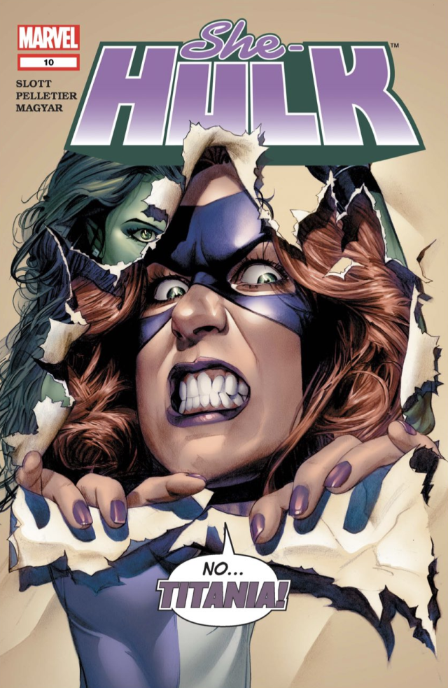 這集圍繞在「泰坦妮亞」控告珍妮佛,稱自己比她早註冊「女浩克」商標;事實上《女浩克》在漫畫的誕生就是出於版權擔憂。 當年CBS買下翻拍權製作了《無敵浩克》影集一炮而紅,為了避免CBS自行創造女性版延伸角色,原作者史丹李設計了《女浩克》並且搶先註冊。