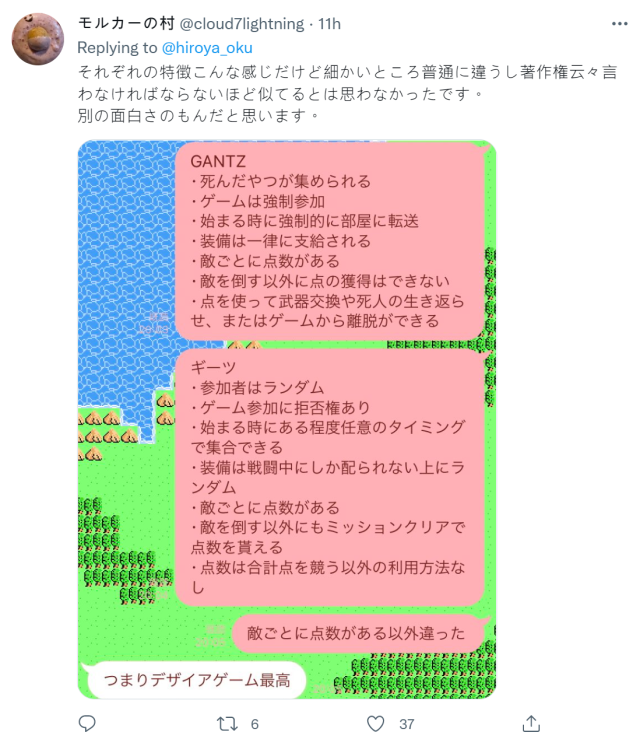 其後底下吸引不少網友回應,認為奧浩哉這樣並不公允,也有網友表示列出了兩者相像之處...恩,看起來是在嘲諷 www。