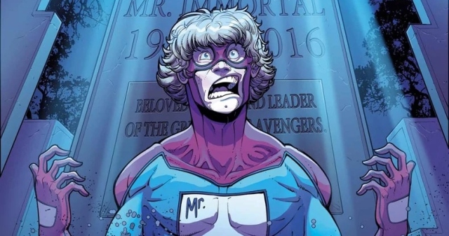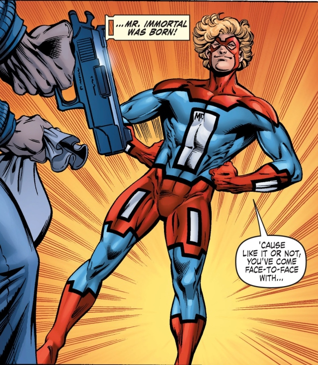 直到後來Craig的女友Terri自殺、Deathurge前來帶走Terri時,Craig哀求對方把自己也帶走,卻被這位死亡使者拒絕了。於是Craig決定跟著自盡,卻發現自己不管自殺都會再次醒來,於是他決定當起超級英雄。「不朽先生」就此誕生。