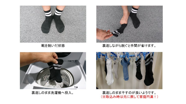 由於前陣子日本颱風來襲,針對避難所的感染病安全問題,基本上都禁止穿鞋。不過因此也產生脫鞋後的臭味問題,因此推廣大家洗滌襪子的時候,將「襪子反過來洗」可以減少臭味問題,也希望大家日常生活中可以嘗試。
