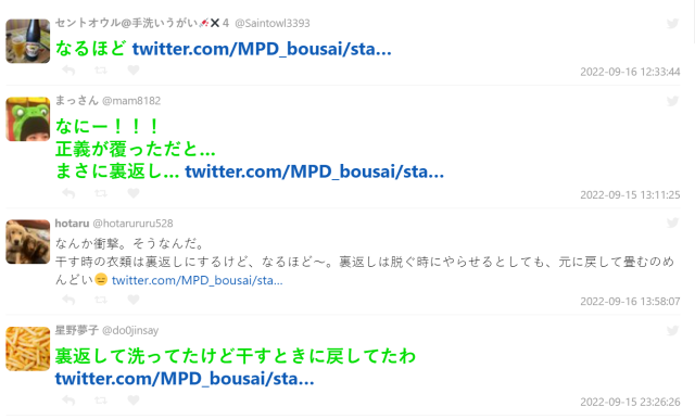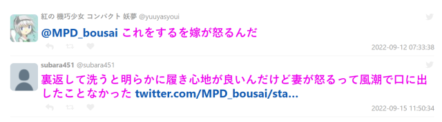 而日本販售襪子的品牌「靴下部」也轉推該貼文,表示這非常重要。當然衣服像是 T-Shirt 也可以這樣做,甚至曬乾時也可以。不過要注意紫外線會造成印刷褪色,可能要拿捏好才不會造成困擾。