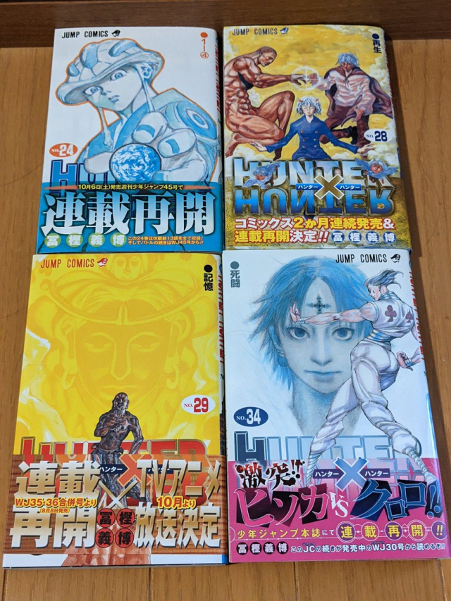 自從蟻王篇之後,應該有不少粉絲對於《獵人》停止連載 & 連載再開已經不是新聞了,紛紛被列入所謂「有生之年之作」的情況。當然每當連載再開,新的單行本發行就會看到「連載再開」的書腰,足以見得這幾年來的頻率。
