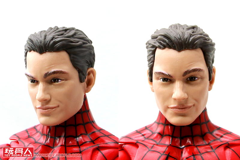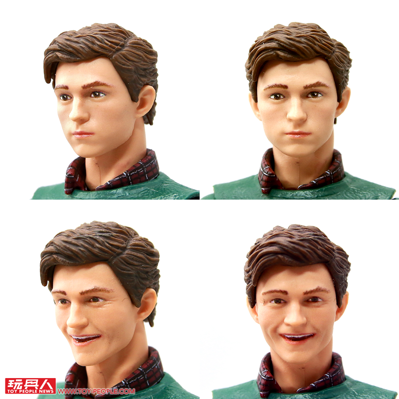 ▼除了超可動的素體,這次更附上了以相片寫實技術(Photo Real Technology)印刷製成的彼得·帕克(Peter Parker)裸顏頭雕,五官的表現也相當令人驚豔。