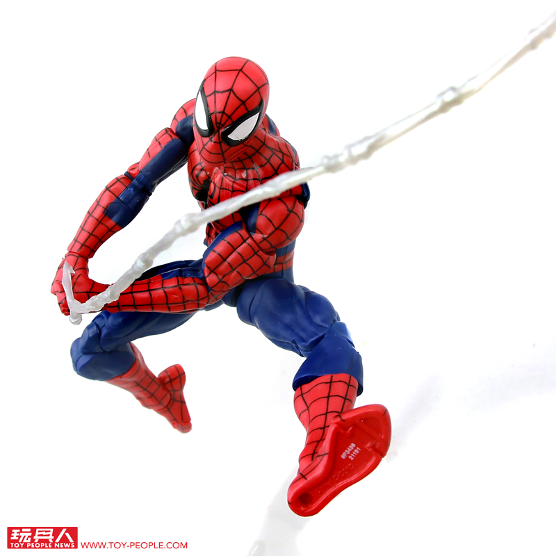 ▼「蜘蛛人」,相較於上一篇「驚奇幻想」的初登場造型,這套紅藍色戰衣應該是我們友善好鄰居更加廣為人知的樣貌與形象。雖然大家可能會覺得「噢又是這個造型」,但開箱後細細把玩就會發現,這次的人偶素體可說是目前漫威傳奇蜘蛛人中堪稱最究極的完全版,包括了提供大角度抬頭的頸關節、可以讓肩部大幅前後活動的蝴蝶關節、新式的兩段胸腰關節、可下拉的隱藏髖關節、藏軸的肘關節和膝關節,甚至還新增了腳尖的單軸關節,如此強大的關節配置在姿勢擺設的運用上,絕對是超乎意料的順暢與自由!