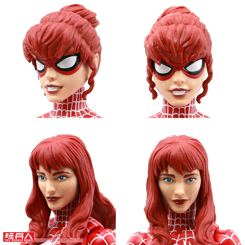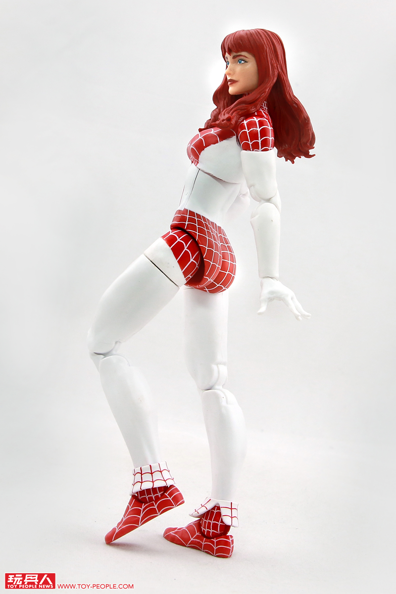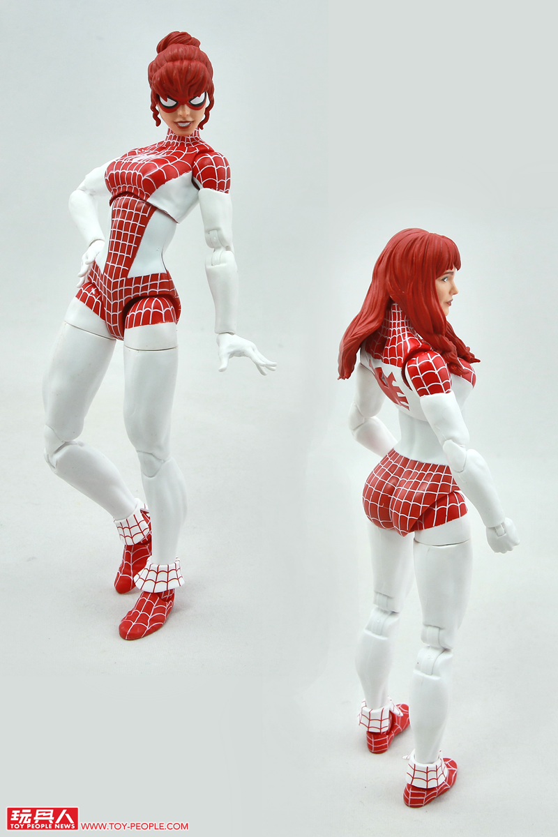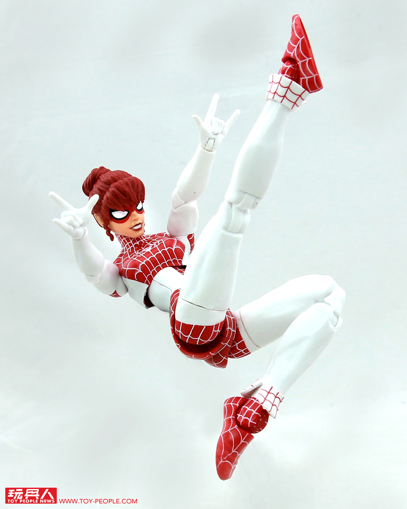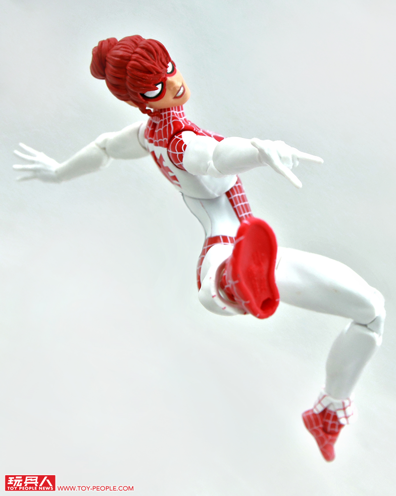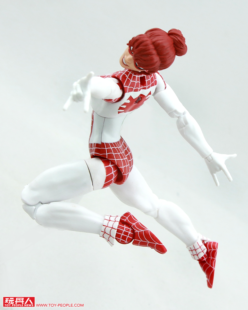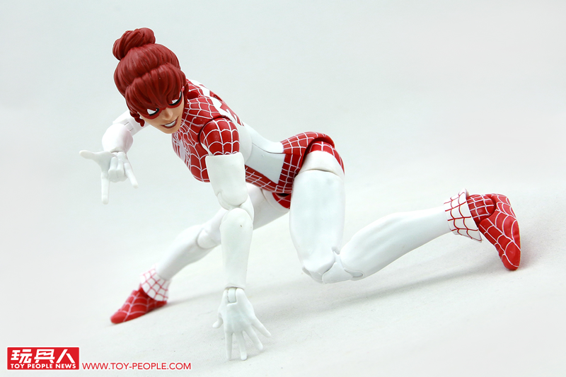 ▼「絲囊」,登場於2016年的漫畫《驚奇蜘蛛人:更新你的誓言》(Amazing Spider-Man: Renew Your Vows)。故事發生在另一個平行宇宙地球-18119,在這個時空中彼得與瑪麗·珍·華森(Mary Jane Watson)持續維持婚姻關係,並育有一女安妮(Annie),一家三口共同進行著超級英雄的生活,絲囊正是瑪麗·珍穿上戰衣的另一個身份。本次的人偶是漫威傳奇首度將其立體化的作品,與上一回提到的蛛絲(Silk)一樣採用了新版的女性素體,手肘和膝蓋特徵的藏軸式雙重關節不僅看上去美觀,在姿勢的擺設上也非常有幫助。