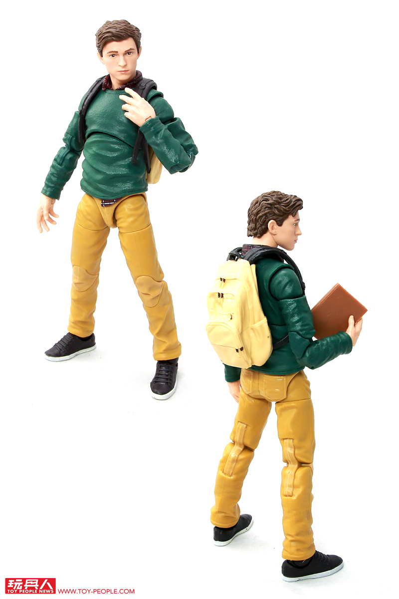 ▼「彼得·帕克」,取材自2017年的真人電影《蜘蛛人:返校日》(Spider-Man: Homecoming)。有別於過往的各式蜘蛛人裝束,這回的雙人包罕見地推出彼得的高中生便服造型,除了精細的雙頭雕,套組更附屬了符合學生身份的後背包和書本等配件,可說是相當值得收藏的造型。