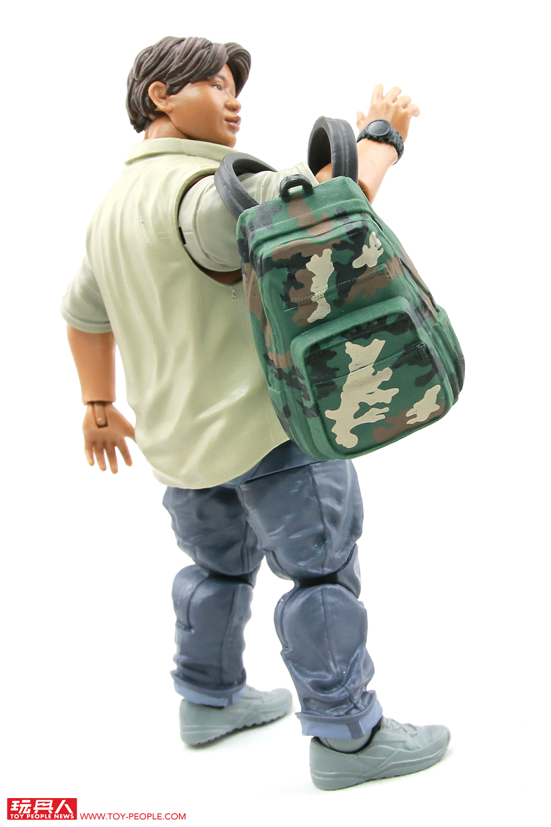 ▼有別於彼得的素色背包,阿尼的背包則是軍武系的迷彩風格。