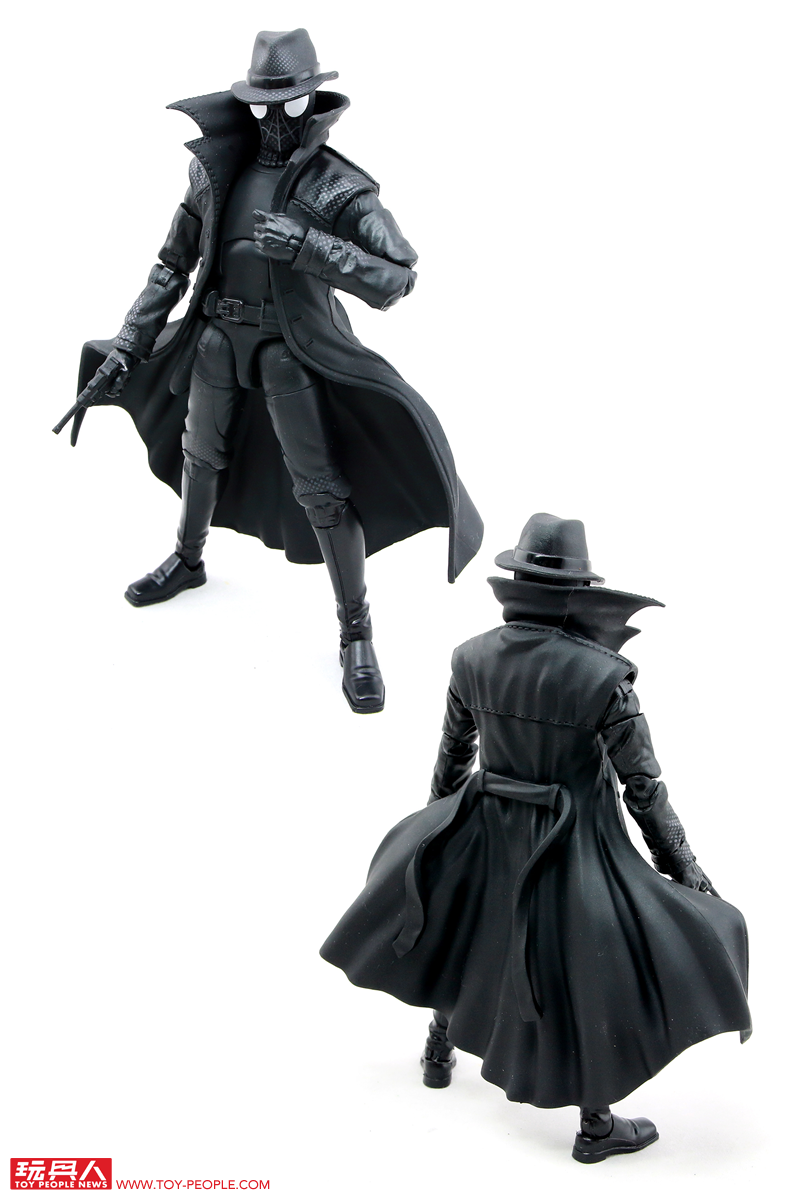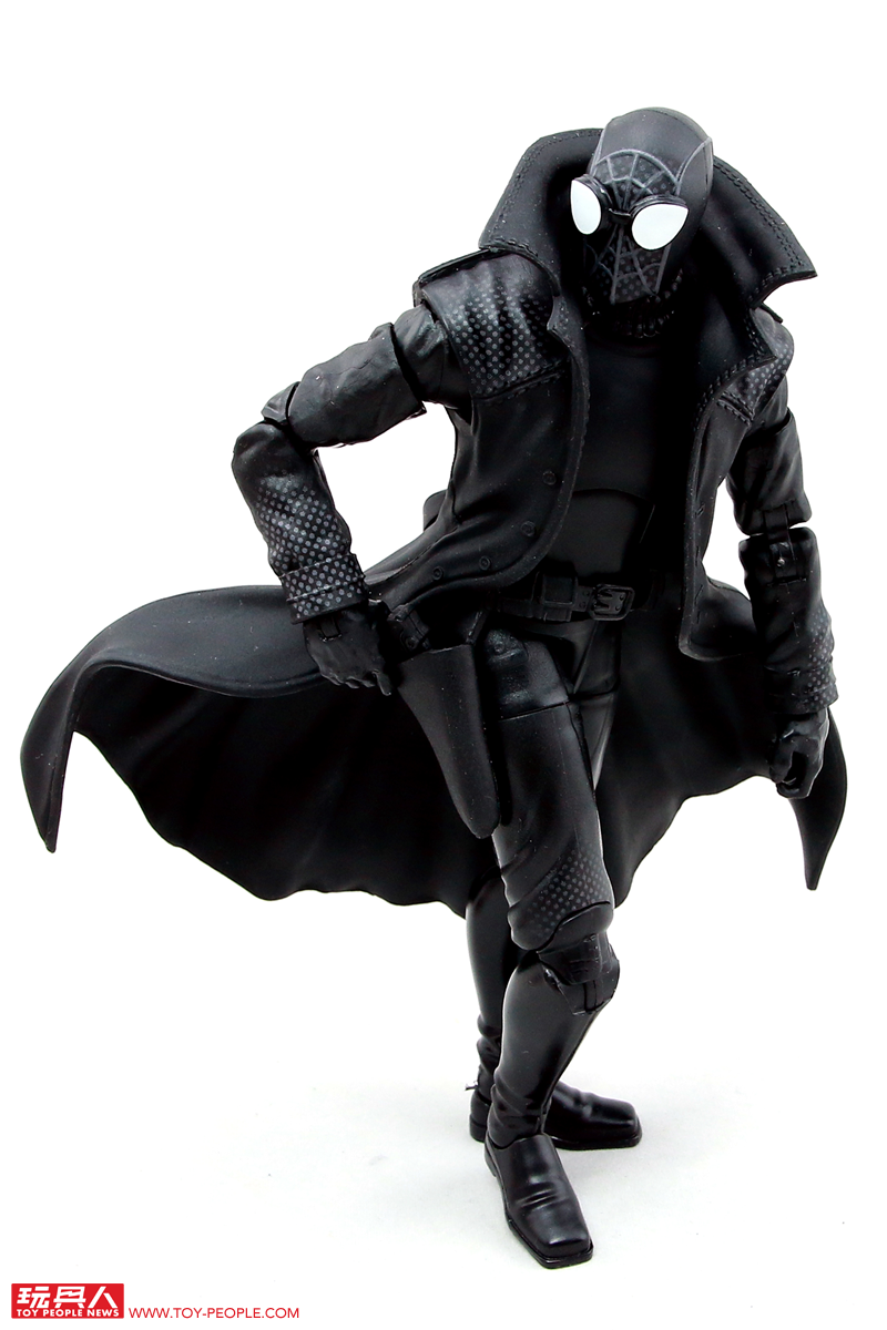 ▼「暗影蜘蛛人」,來自2018年的動畫電影《蜘蛛人:新宇宙》(Spider-Man: Into the Spider-Verse)。這位出身平行時空地球-90214的彼得最早登場於2008年的漫畫《暗影蜘蛛人》,身處經濟大蕭條的1930年代,同樣(疑?為什麼我說同樣)在歷經班叔(Uncle Ben)遇害後化身為潛藏在漆黑之中的超級英雄蜘蛛人,試圖擊垮最上層的城市犯罪者諾曼·奧斯朋(Norman Osborn)。本次的人偶採用了新宇宙中登場的造型,再現暗影蜘蛛人飄逸的黑色風衣,以及一身有別於其他宇宙的低調造型。
