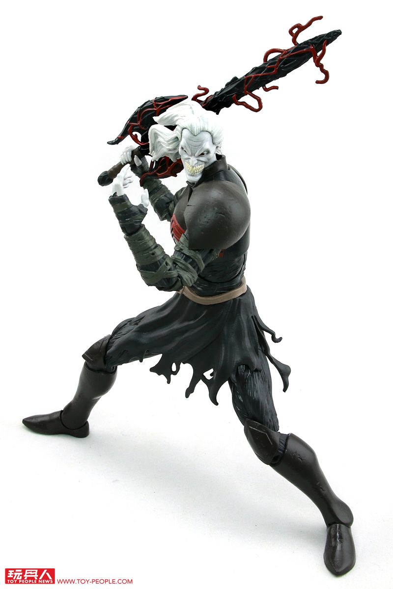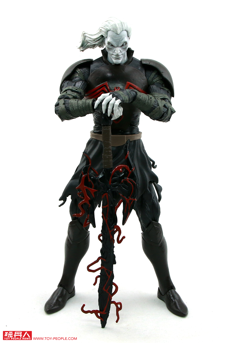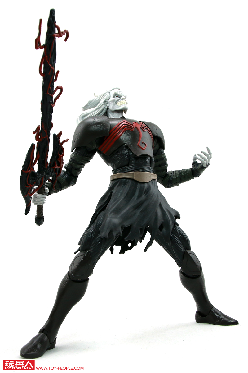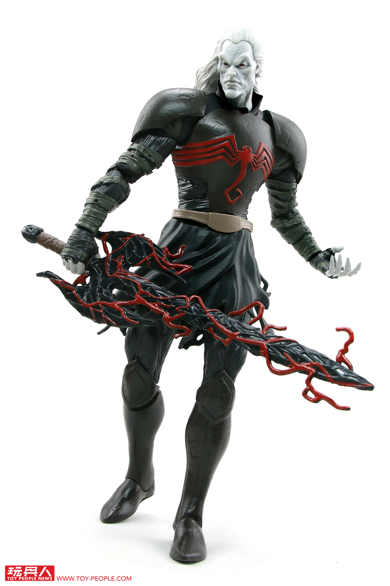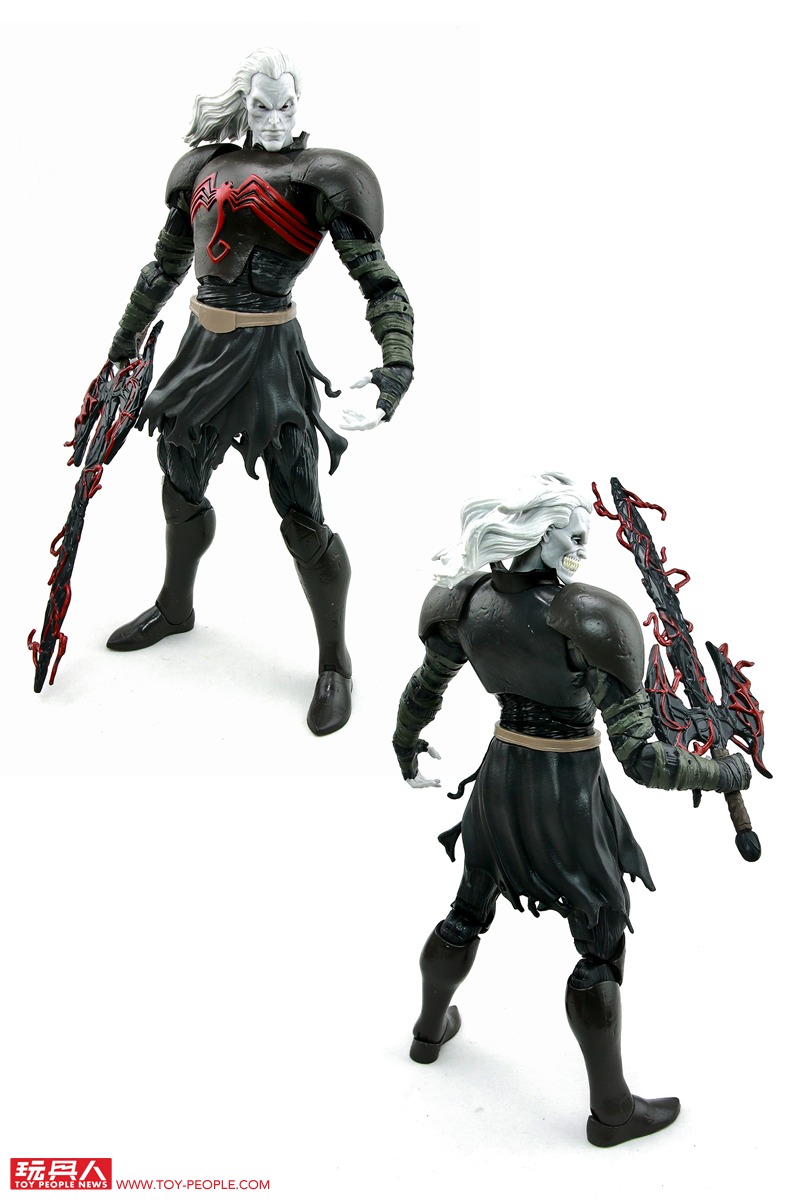 ▼「努爾」,最初登場於2018年的漫畫《猛毒》(Venom)第四卷第三期,為共生體之神與其始祖,這位暗黑邪神最初沉睡於無盡的黑暗中,被天神族造物的創世之光所驚醒,在黑暗王國被「入侵」後感到震怒的努爾召喚出第一個劍形的共生體(Symbiote),並用這把「至黑死劍」(All-Black the Necrosword)將面前的天神族屠殺,更以其頭顱的力量強化其武器,最後創造出共生體軍團來實現他弒神、滅光與征服宇宙的野心。本次的人偶是漫威傳奇系列首度將努爾立體化的作品,不僅還原他高大又霸氣的身形,獨特的盔甲也予以完整重現,可說是相當備受矚目。