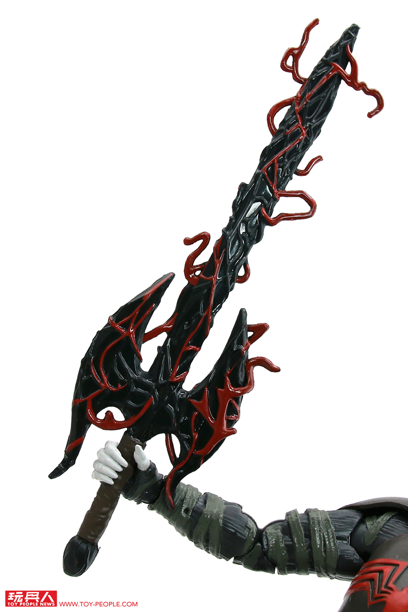 ▼至黑死劍,看過《雷神索爾:愛與雷霆》(Thor: Love and Thunder)的朋友應該對這名字不陌生,沒錯,在漫畫中這把魔劍曾經易主到屠神者戈爾(Gorr the God Butcher)手中,這次的實體化是以軟膠的材質製成,劍身表面共生體的液體流動感相當活靈活現。