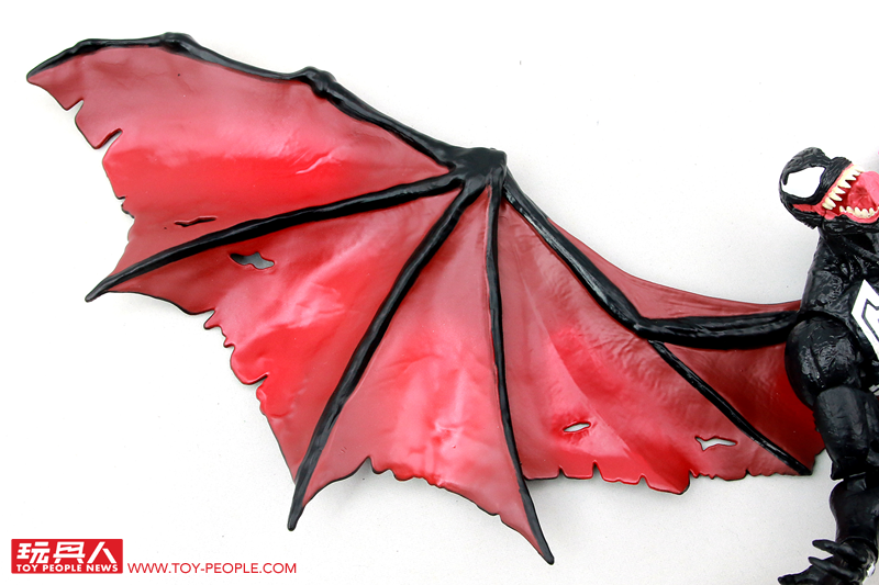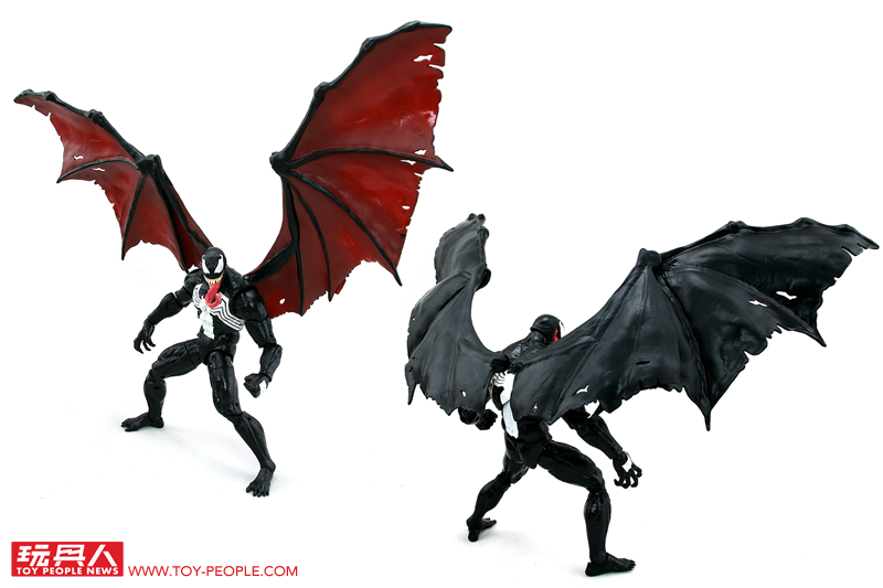 ▼「猛毒」,取材自2021年的漫畫《黑衣之王》(King in Black)第一卷第五期最終的共生體之王造型。由艾迪·布洛克(Eddie Brock)變身而來的猛毒最初登場於1988年的漫畫《驚奇蜘蛛人》第300期,自此之後他便與猛毒共生體分分合合,立場與身分也時正時邪,遊走在反英雄與超級反派的邊緣,最後歷經了《黑衣之王》努爾入侵的事件後,繼承了共生體之神的尊爵地位。本次的雙人包是將過去獨立電影版的素體重新利用,胸口印上猛毒經典的標誌,搭配貼近漫畫形象的頭雕,最後,還比照漫畫附上兩片超巨大的雙翼,單是簡單組合起來就已經霸氣爆棚!